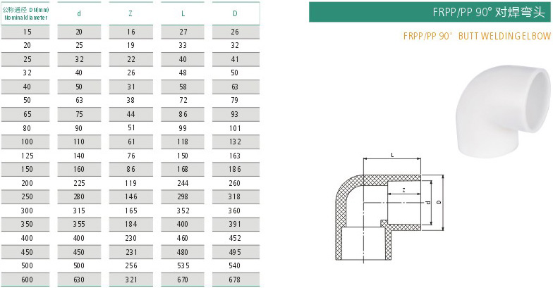 FRPP PP90°对焊弯头