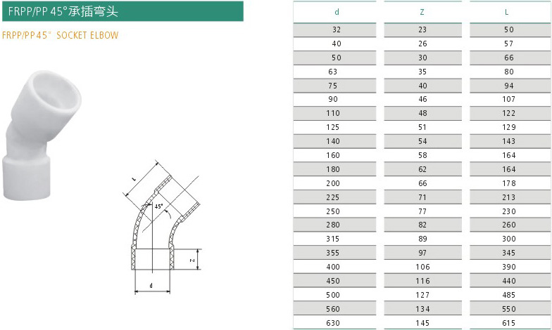 FRPP PP45°承插弯头