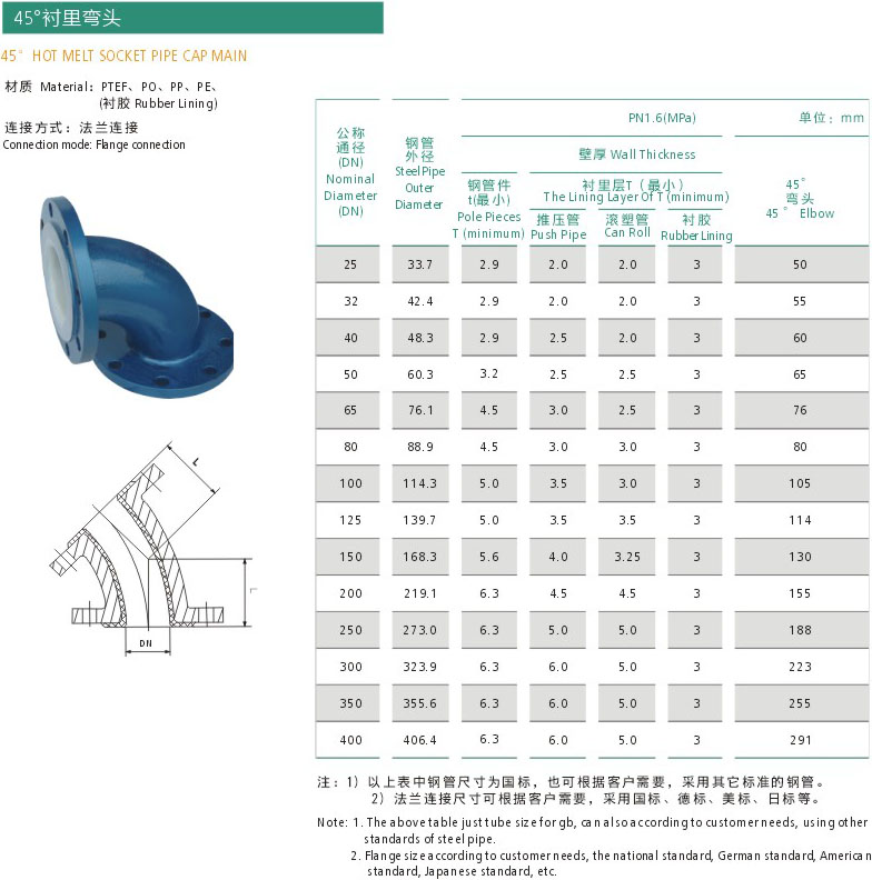 45°衬里弯头