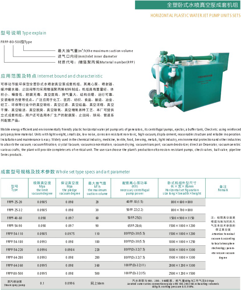 全塑卧式水喷真空泵成套机组