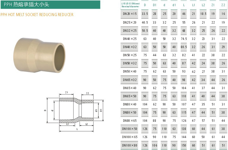 PPH热熔承插大小头